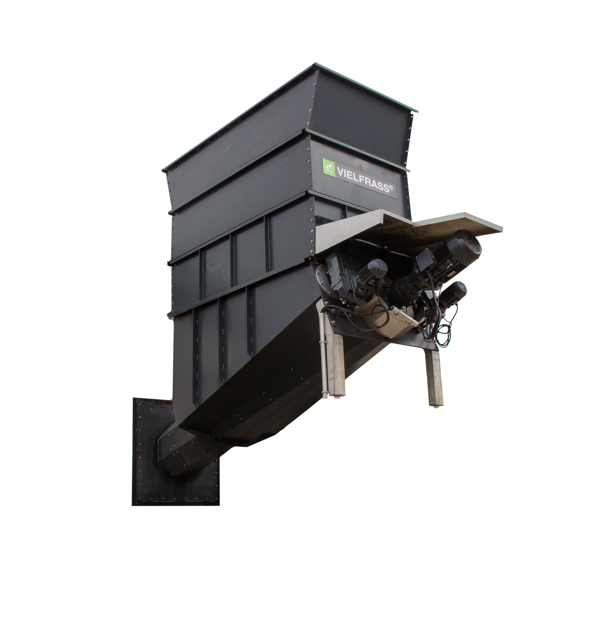- Bedarfsgerechte Beschickung durch Intervall-Steuerung, über Gewicht oder im Handbetrieb möglich (Vielfraß® ECO 5 m³)